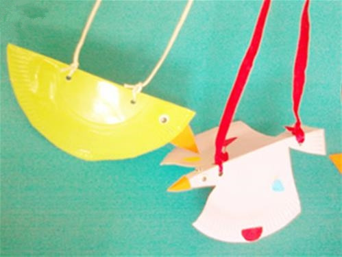 家里的紙盤用完后,別著急扔了,可以用來制作紙盤鳥。將紙盤一分為二,畫上嘴巴,粘上眼睛。還缺小翅膀?別著急,這部分也可以用紙盤制作,剪成三角形,用針固定好,翅膀撲哧撲哧的,相當可愛哦。