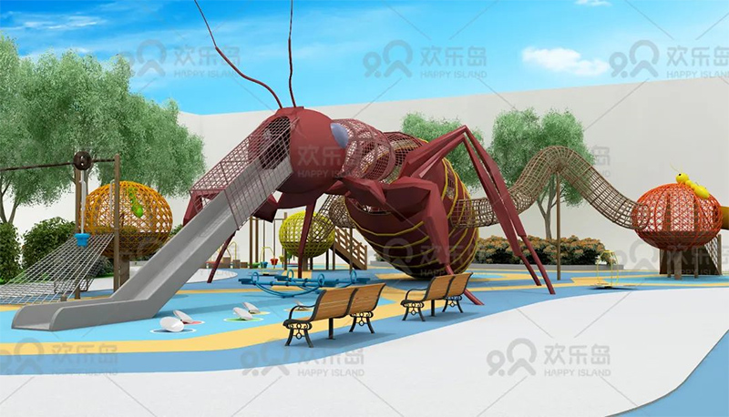 玩法說(shuō)明:整個(gè)產(chǎn)品以紅螞蟻的造型來(lái)拉近孩子們與大自然的距離,讓孩子們感受大自然的生活與娛樂(lè)。孩子們主要通過(guò)鉆、爬、攀、滑、蕩、走、抓、轉(zhuǎn)、拍、跳等運(yùn)動(dòng)功能,在這個(gè)產(chǎn)品中進(jìn)行體驗(yàn)、探險(xiǎn)、益智、運(yùn)動(dòng)。提高孩子的身體素質(zhì),發(fā)掘孩子的運(yùn)動(dòng)天賦。同時(shí)在運(yùn)動(dòng)中提高孩子的心智發(fā)育,加強(qiáng)人與人之間的溝通交流,從小樹(shù)立集體感。