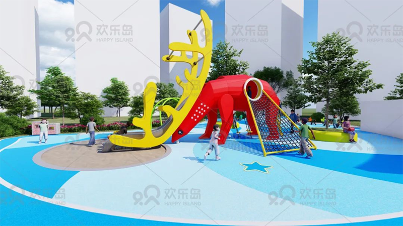 玩法說(shuō)明:整個(gè)產(chǎn)品的造型是一個(gè)梅花鹿,孩子通過(guò)攀爬爬網(wǎng)至梅花鹿腹部,可在梅花鹿腹部娛樂(lè)嬉戲,再爬上樓梯從梅花鹿鹿角一直滑至地面。通過(guò)鉆、爬、攀、滑、蕩、走、抓、轉(zhuǎn)、拍、跳等運(yùn)動(dòng)功能,提高孩子的身體素質(zhì),發(fā)掘孩子的運(yùn)動(dòng)天賦。同時(shí)在運(yùn)動(dòng)中提高孩子的心智發(fā)育,加強(qiáng)人與人之間的溝通交流,從小樹(shù)立集體感。